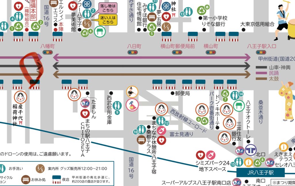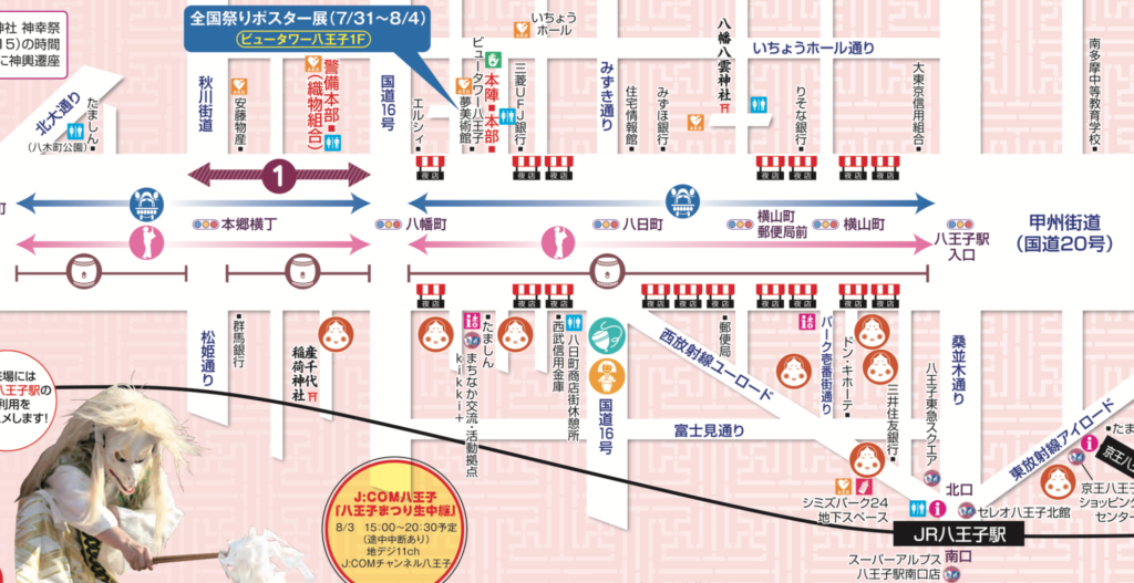 下記の写真は前回2019年の八王子まつりのパンフレットからですので、