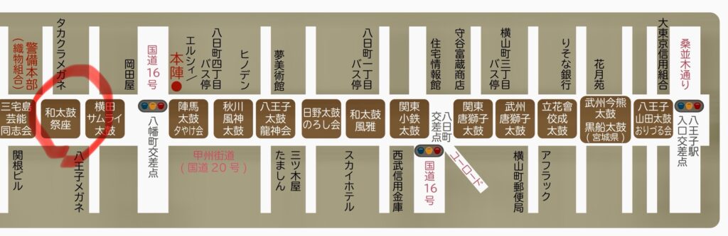 場所:八幡町交差点先八王子めがね店、日本の心店の前